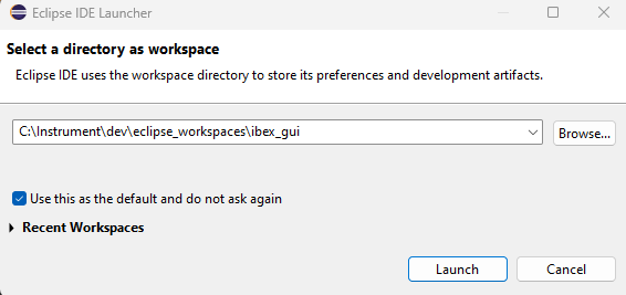 folder, select “Launch an Eclipse application”. The IBEX GUI should now open.