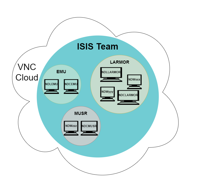 2. Creates “Machine Groups” in VNC portal all within the ISIS “Team”, one per physical ISIS instrument e.g. “LMX” (See diagram above)